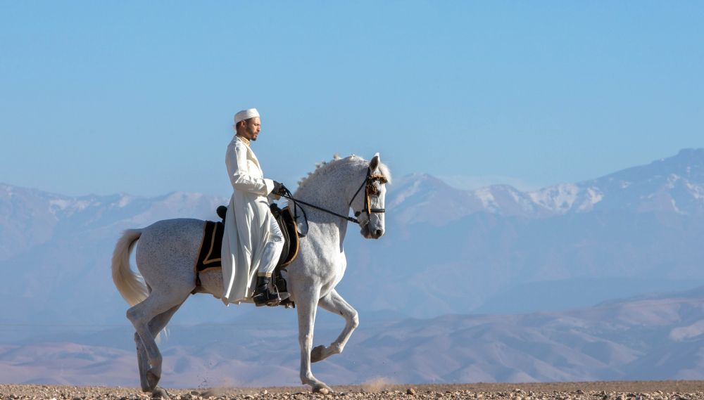 Au départ de Marrakech, directement depuis votre lieu d’hébergement, c’est après une trentaine de minutes de route en 4×4 que vous retrouverez les chevaux aux portes du désert. Commencera alors une chevauchée au cœur de cette vaste étendue de pierres au relief marqué d’élégants massifs aux couleurs variées et de petits canyons crées par l’érosion. Après 2h30 de randonnée, découvrez le cadre authentique de Terre des Étoiles et jouissez d’un coucher de soleil des plus inspirants tout en dégustant un rafraîchissement avec, en toile de fond, les montagnes de l’Atlas et l’immensité du désert.