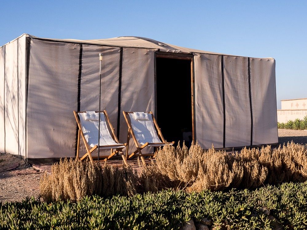 Vol de Paris vers Marrakech (à votre charge) et accueil à l'aéroport. Merci de bien nous communiquer votre plan de vol. Pour les personnes déjà sur place, merci de nous donner le nom et l'adresse de votre hôtel. Transfert sur le site de Terre des Etoiles situé dans le désert d’Agafay. Installation dans vos tentes lodge et visite du lieu. Dîner et nuit au campement.
