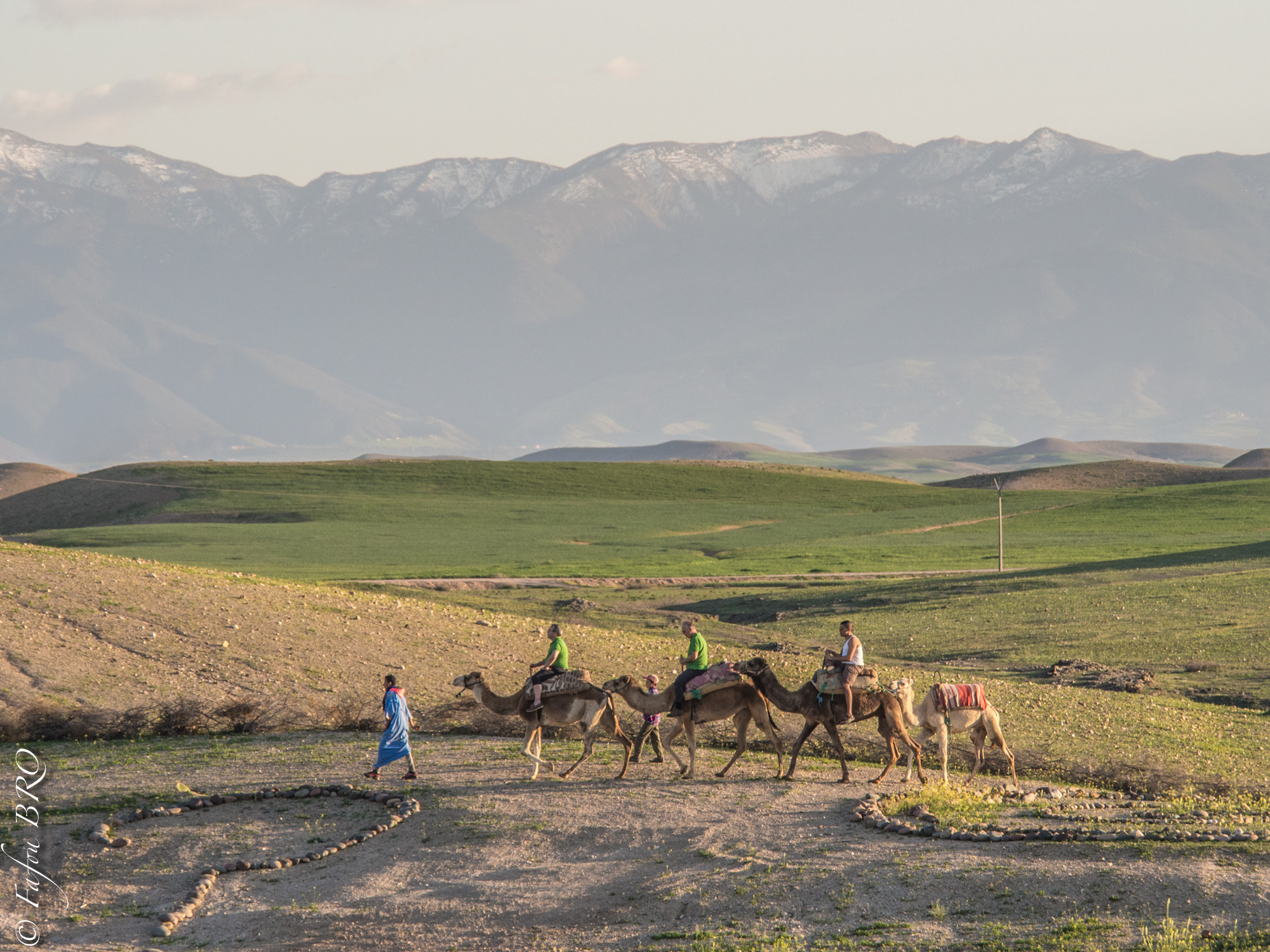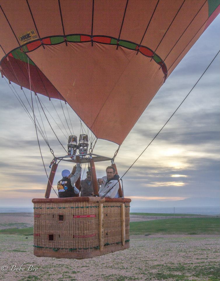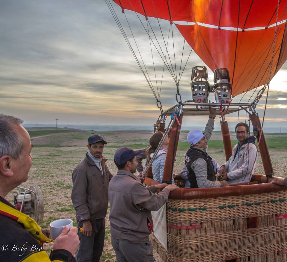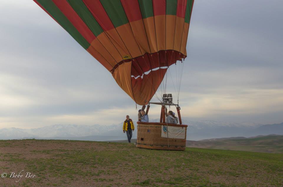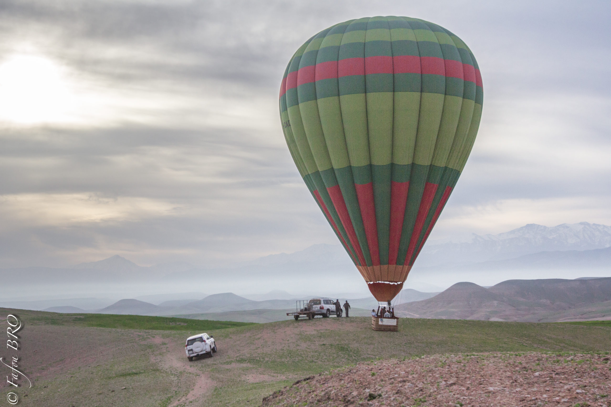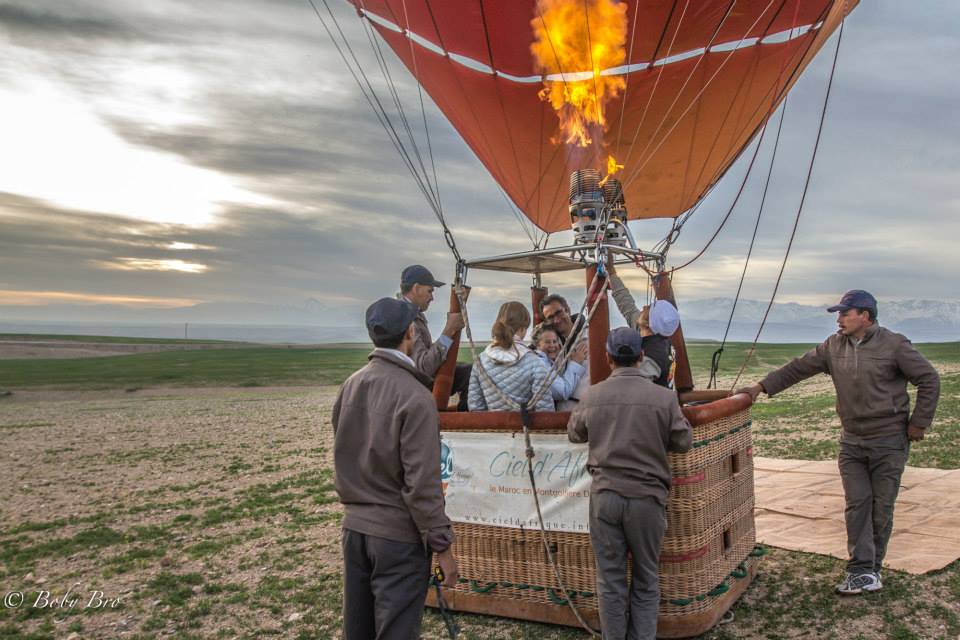 Après une nuit magique dans le désert, vous vous apprêtez à vivre un rêve éveillé… Tôt le matin, direction le site de décollage pour assister et participer au déchargement du matériel, aux essais d’allumage et enfin, au gonflage du ballon, avant de faire un voyage inoubliable au-dessus du désert d’Agafay.