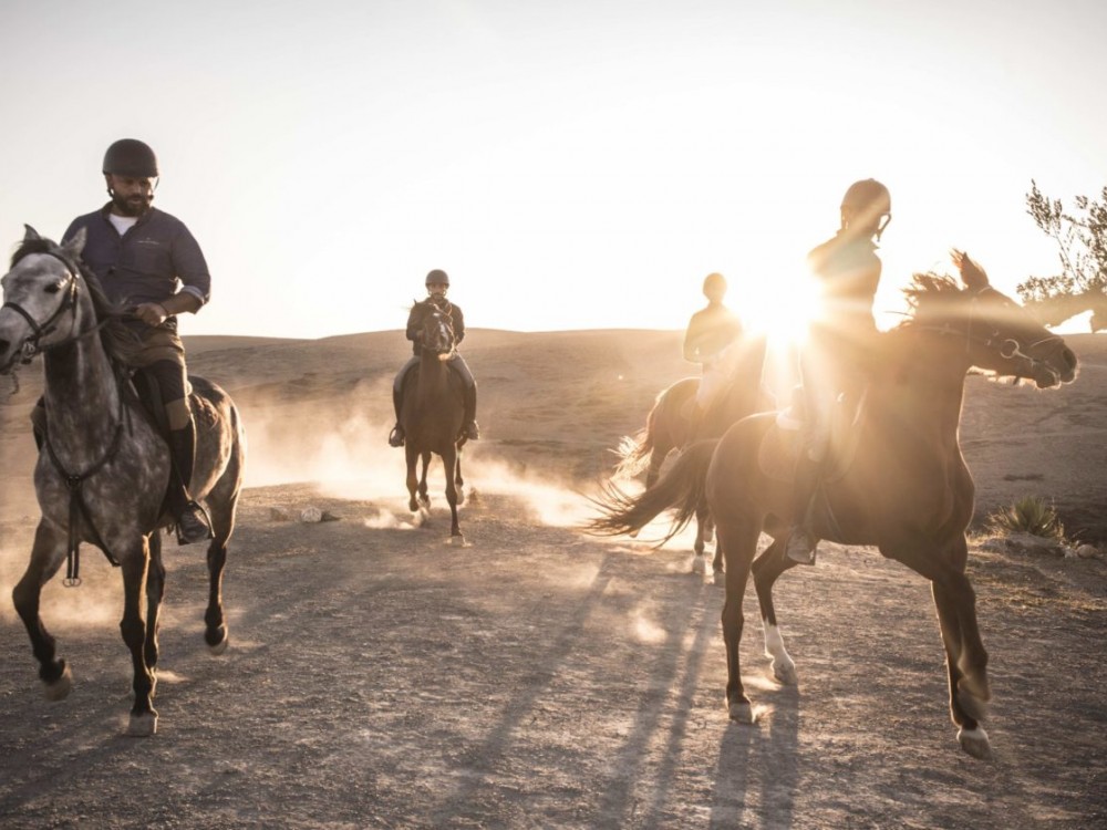 Départ pour une balade à cheval, à dos dromadaire ou balade en VTT selon votre choix pour découvrir le désert d’agafay. Retour à l’écolodge pour déjeuner sur place.